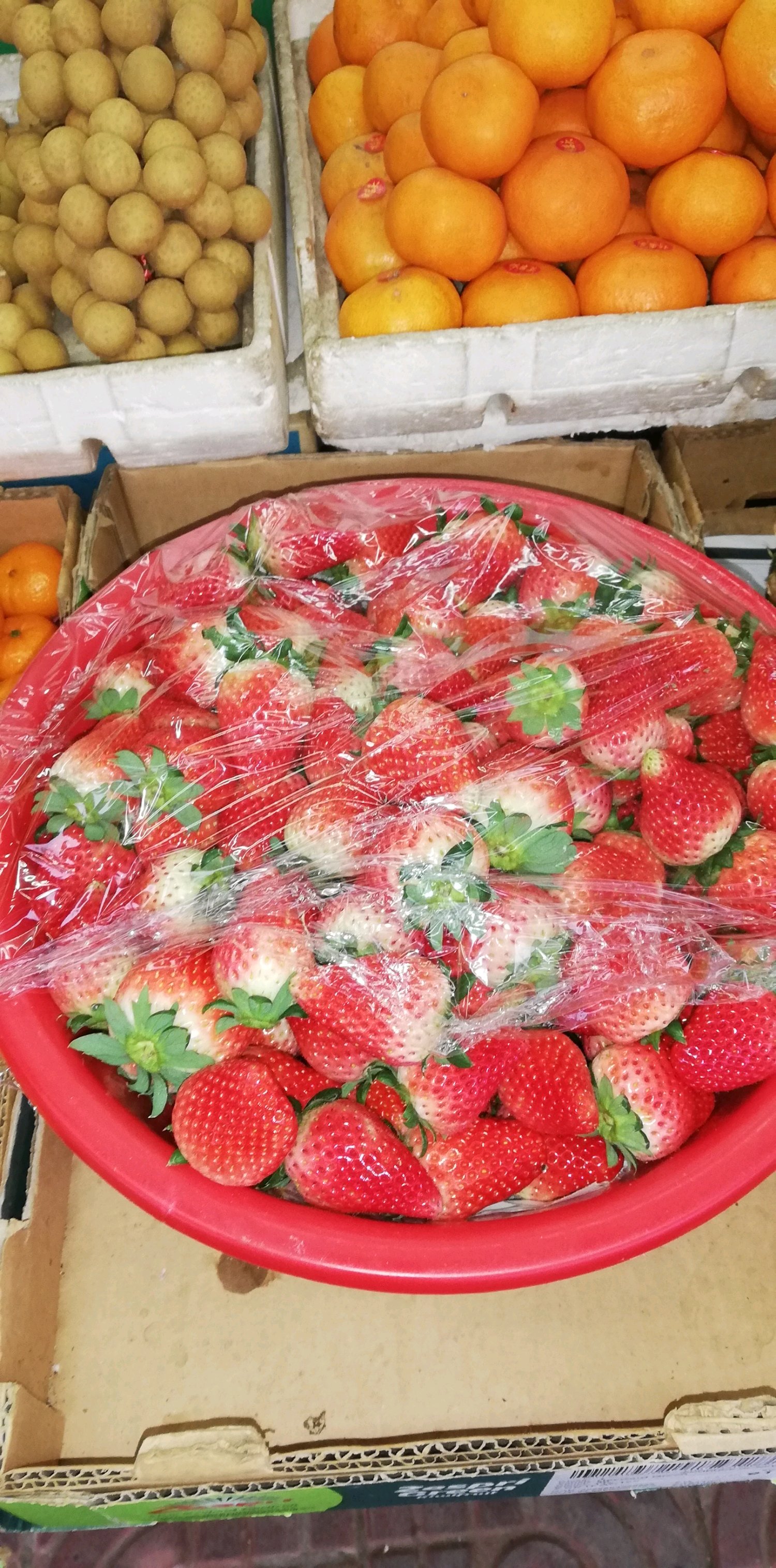 超市里红颜38一盒五百克,菜市场二十元一斤,超市里品质会好一些