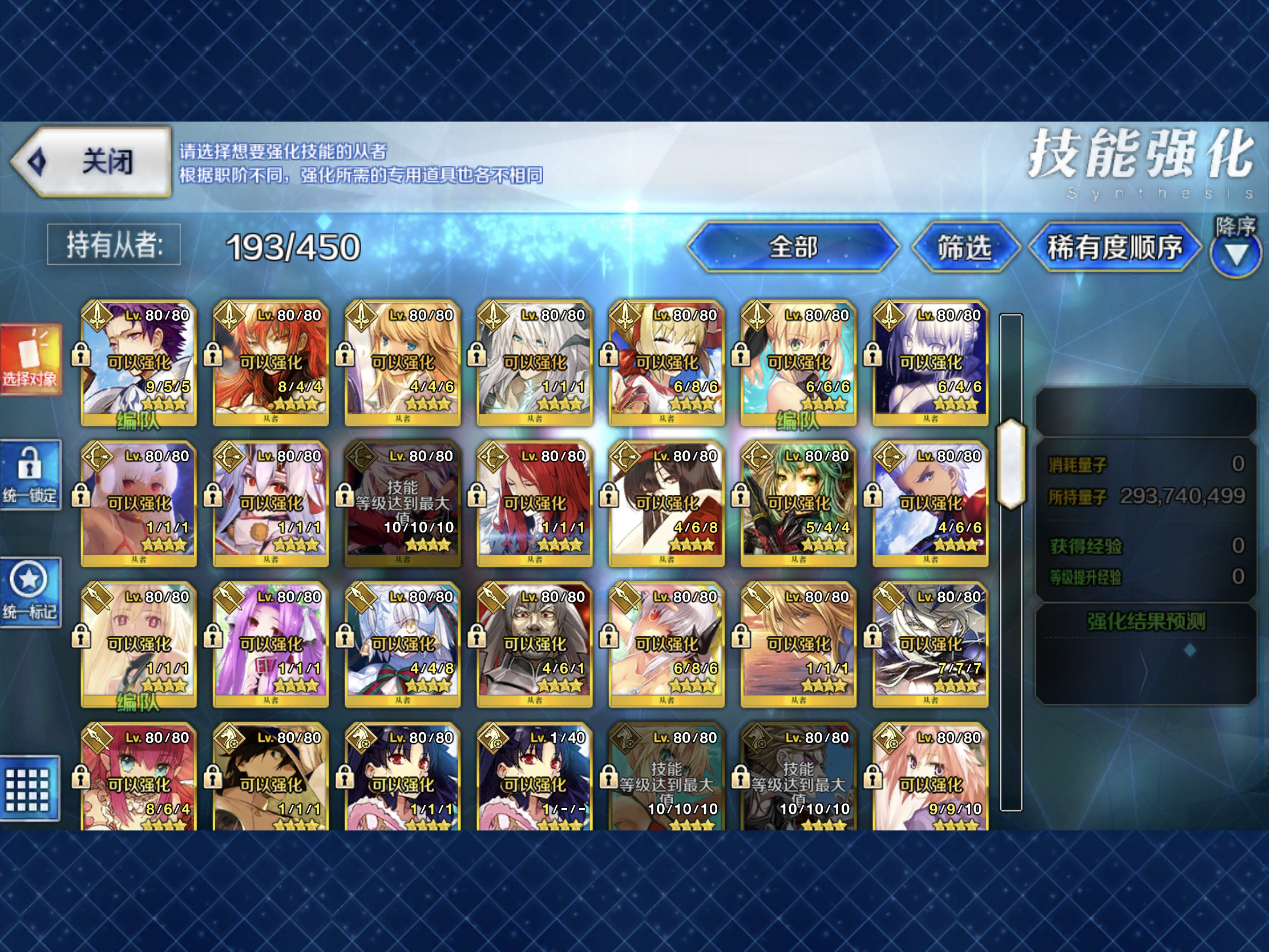 抽了两天友情池,终于把所有四五星练满了,手都抽筋了开始练技能