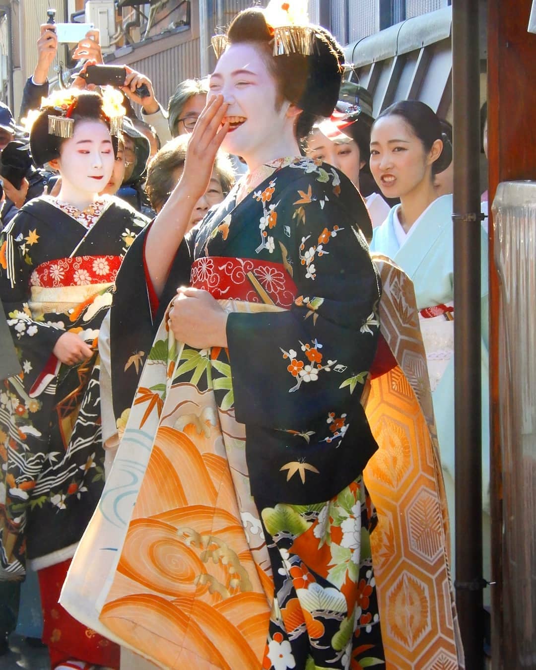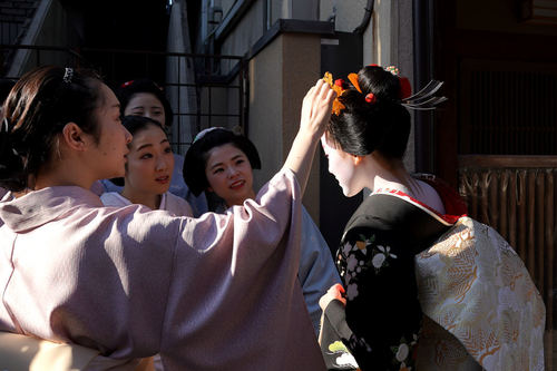 刚出店的孩子们打扮的喜气洋洋 真的好看 比一般正装姿都美 可惜只能看三天 不过先斗町的初级舞妓正装姿和出道姿正面看完全一样 可以多看几眼