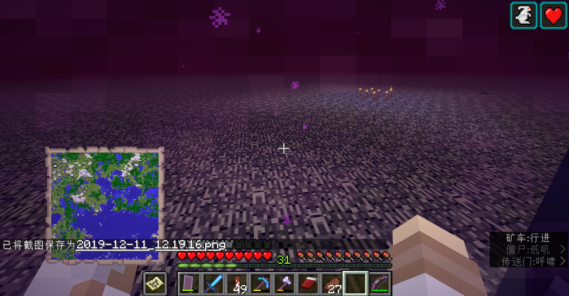 这次我本来是想在高空传送门1去地狱的传送门B,但结果把我送到了基岩上的传送门C