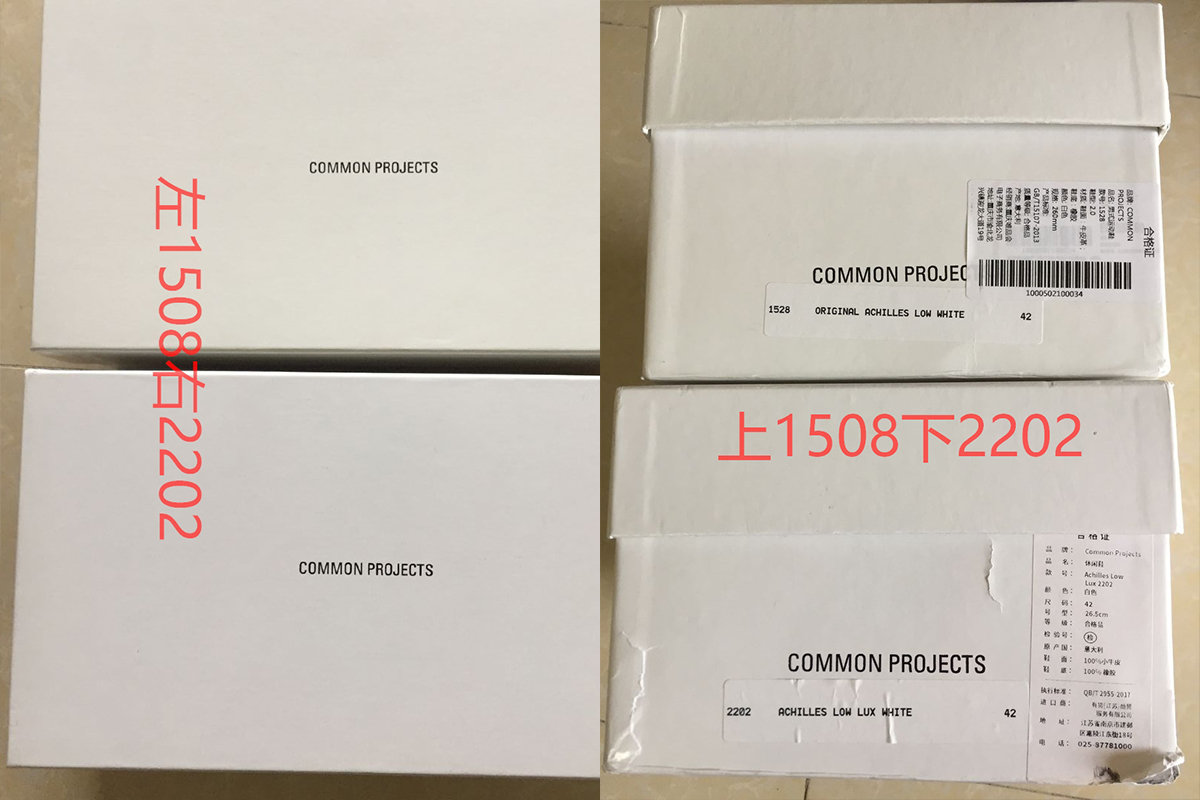 1、两款鞋盒没有多大区别,鞋盒侧面印有各自平台标签,布袋CP字体大小不一样,1508的偏粗一点,字体印刷模糊一点点,2202字体瘦身一点,字体印刷清晰一点。