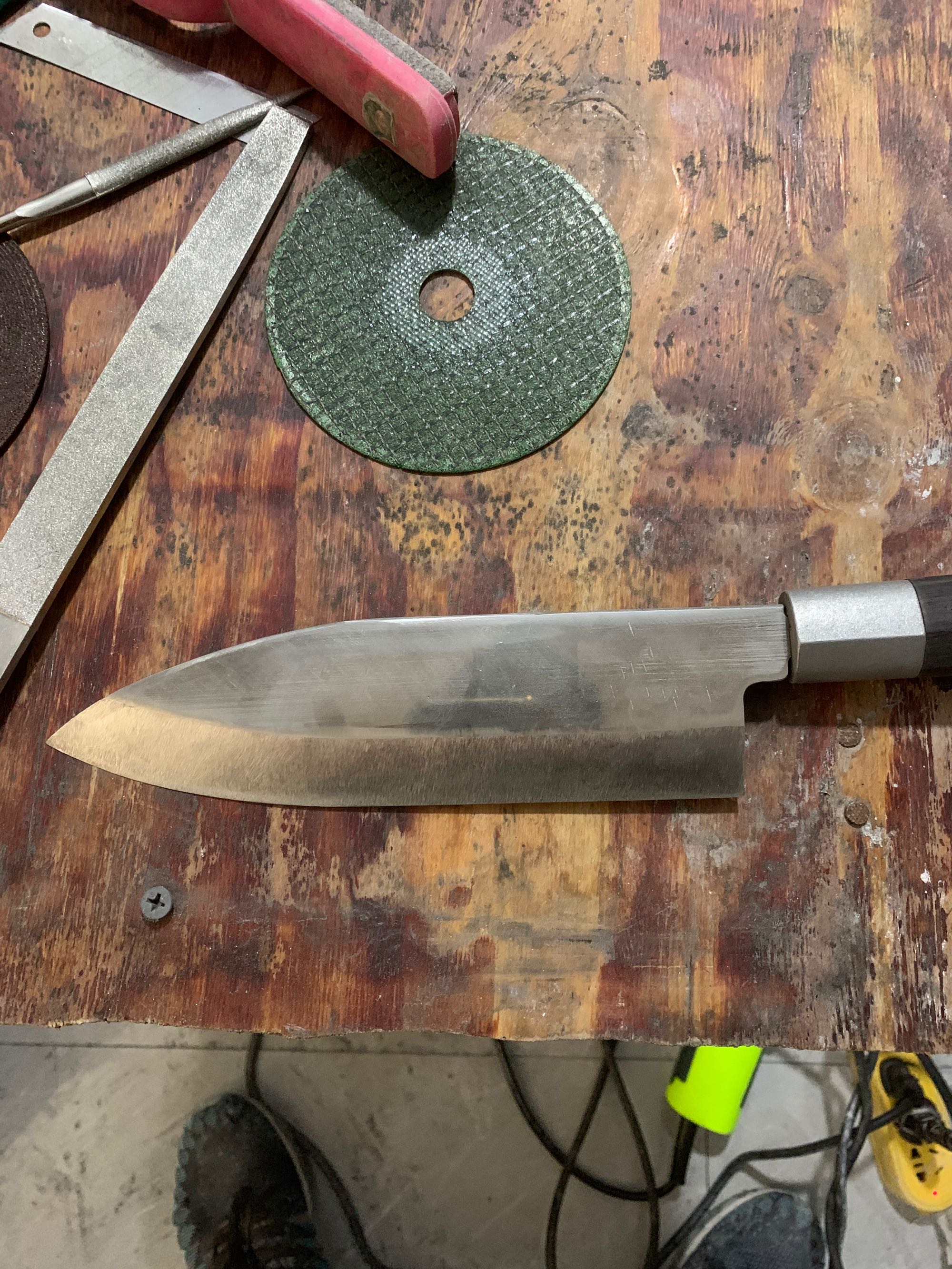 磨好了,砍腊鸡试一下,居然崩卷刃,买到假货了,北方刀匠的货