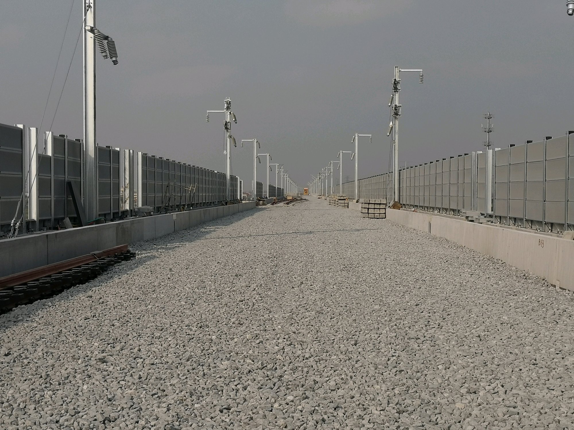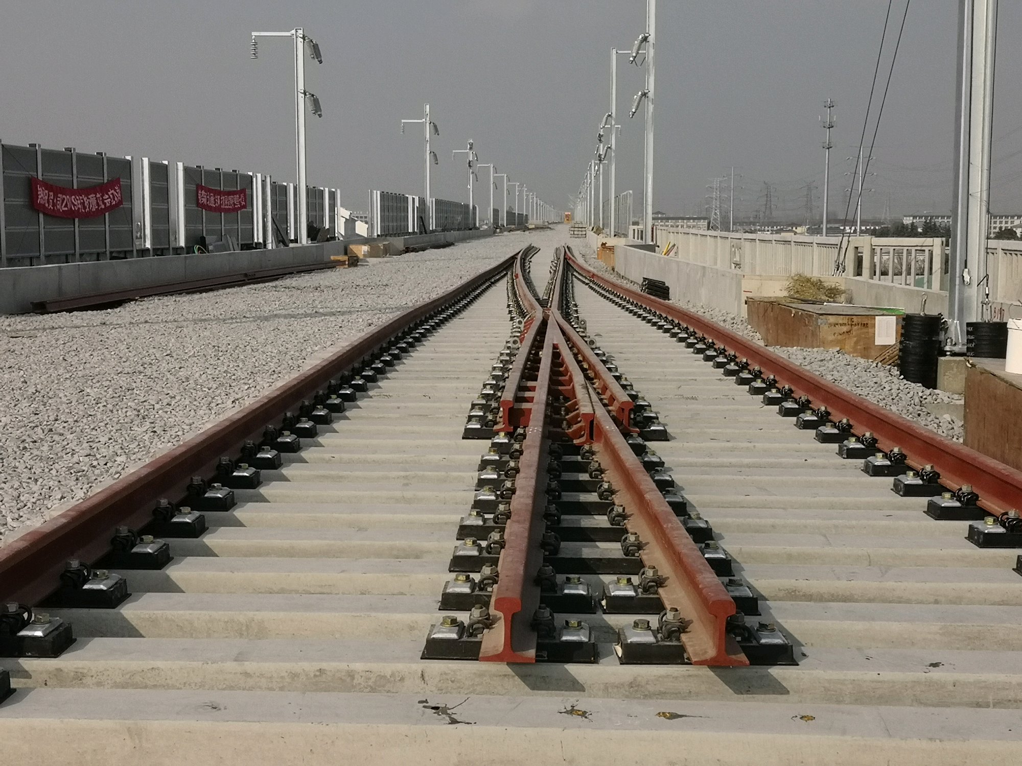 #道岔北面,第七根电杆右线,也铺好了3#