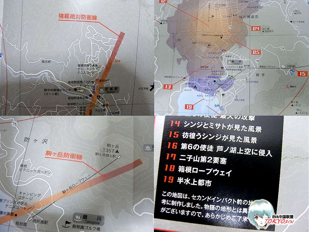 (从图中我们可以看到“强罗绝对防卫线”、“驹岳防卫线”等等《EVA》中的建筑,以及这些建筑的现实原型,看来《EVA》的设计还是很大程度来源于生活嘛~)