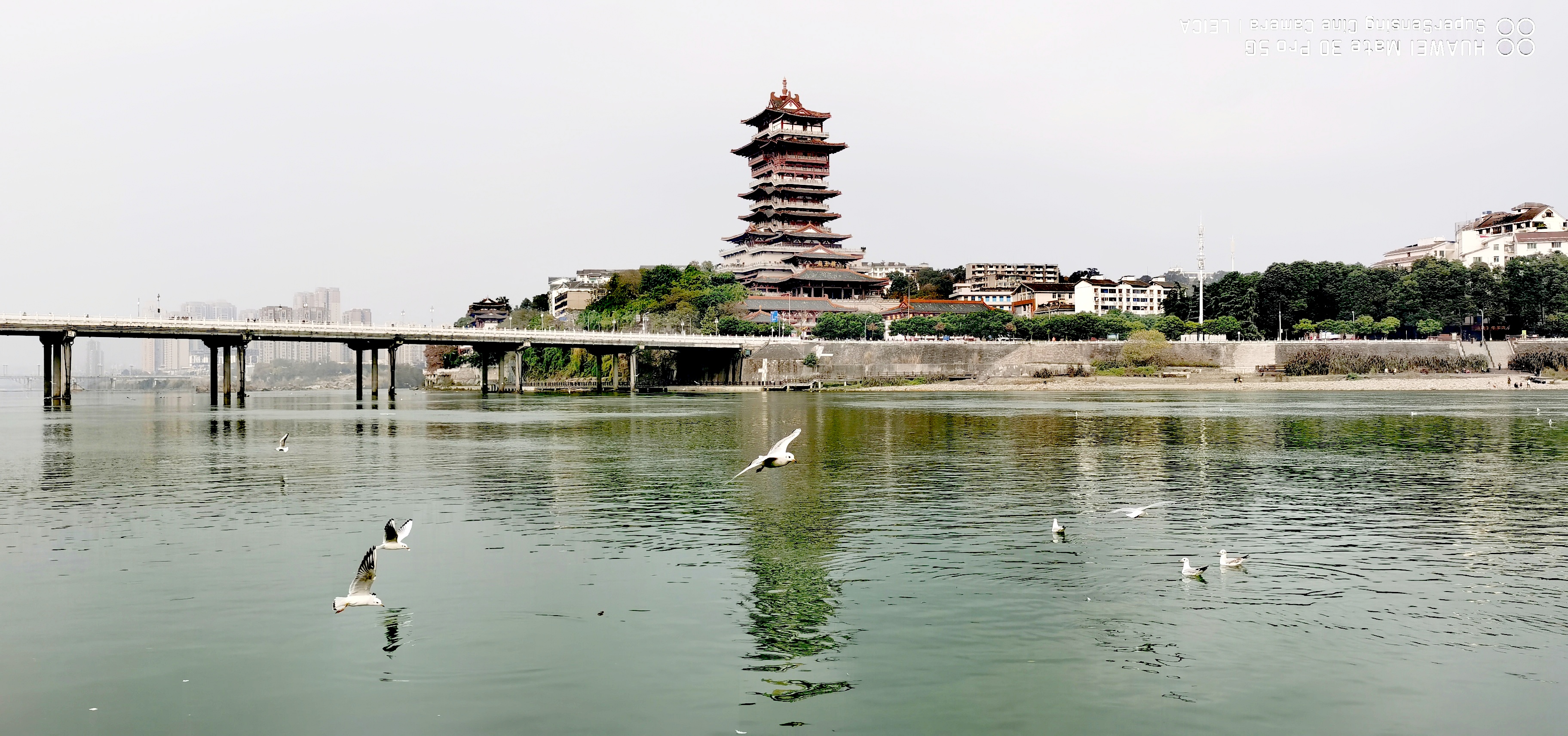 海鸥,市民,越王楼,涪江,一幅幅和谐美景。