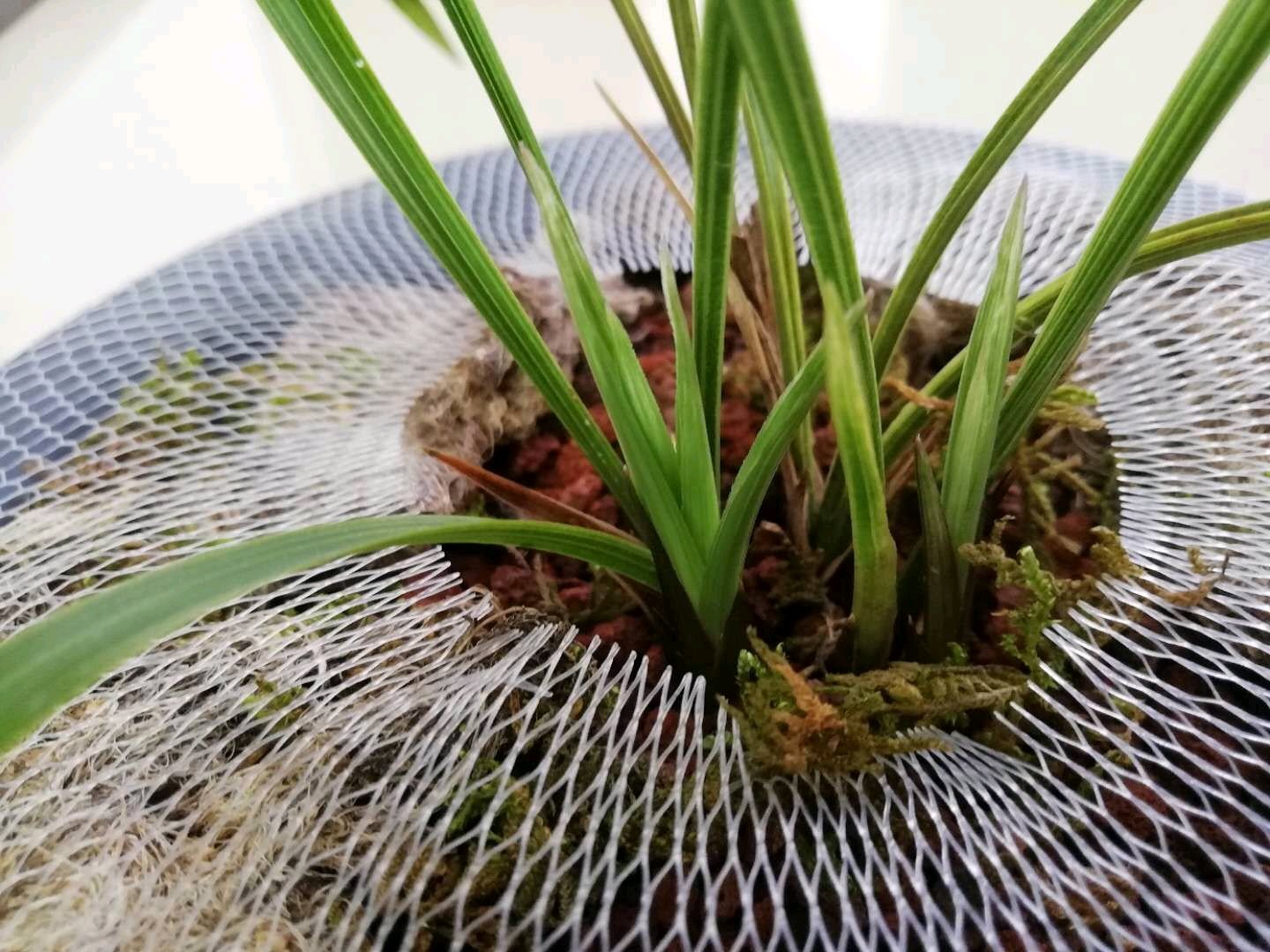 今年八月当我再次拍照片的时候,它已经从当初的丑小鸭变成白天鹅了,草型很美。盆侧面是植料处理时无意混进去的蕨类,芽长出来了,我也没给去掉。