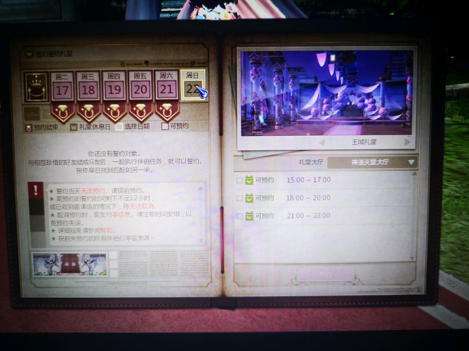 誓约之后,能预约第二天及以后的举办誓约
