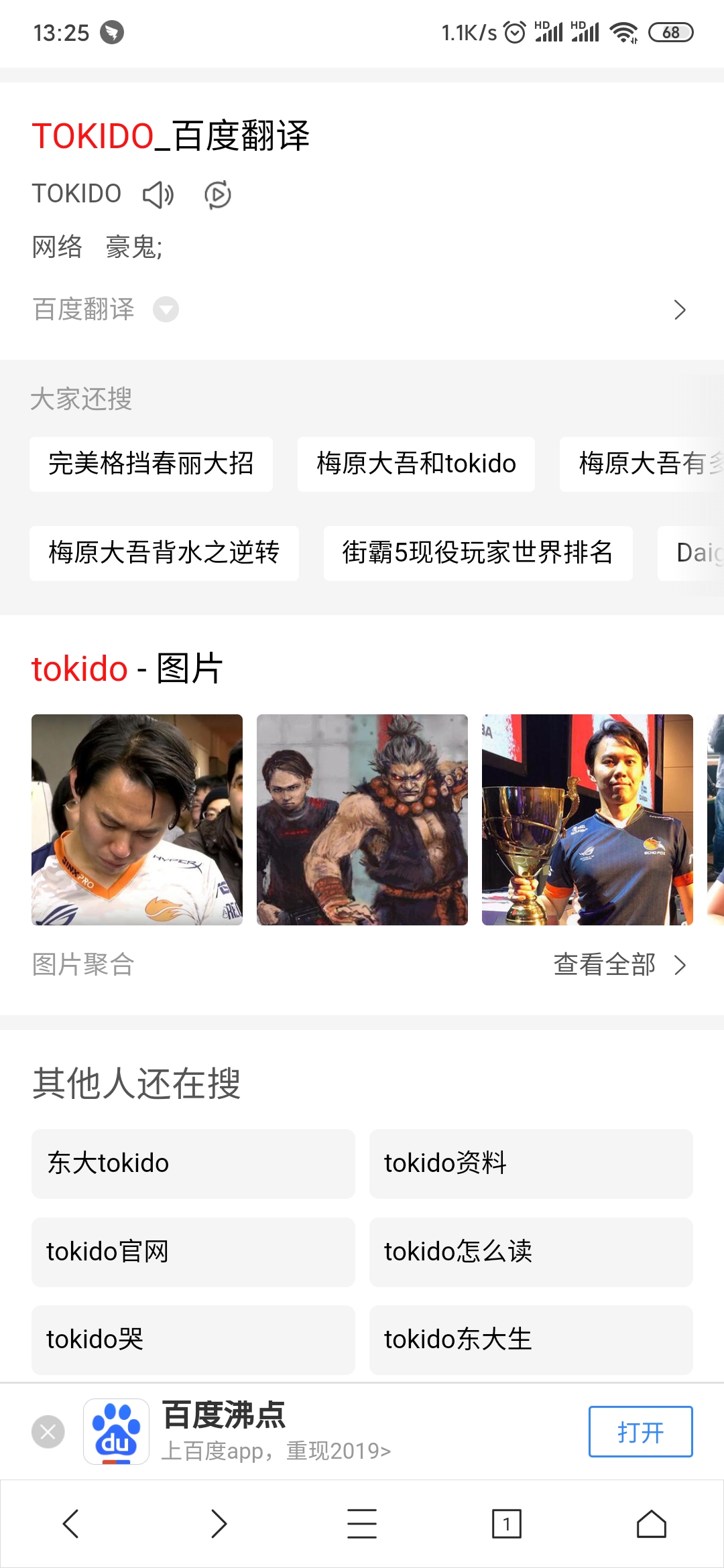扫了一圈,发现大家都不知道这个ID的小故事 其实东大是玩97拳皇出身的,凭借着简单有效的赖招 让对手一点办法也没有,其中最有名的就是“八神,跳重脚 落地 发波 直到对手防守出现漏洞”而八神发波时喊的日语发音正是“TOKIDO(这个发音不标准,只是因为孩子们听不太清游戏机里人物说的是什么 顺着发音叫的而已)”东大的好友们发现他这赖招真是一绝后对他说“你这么爱用八神发波打赖招,以后外号就叫TOKIDO吧!”这个外号就被沿用至今成为鼎鼎大名的东大Tokido