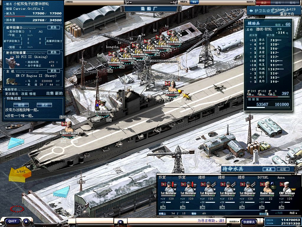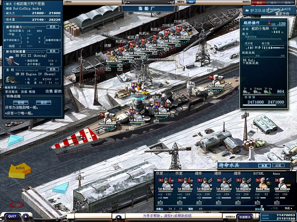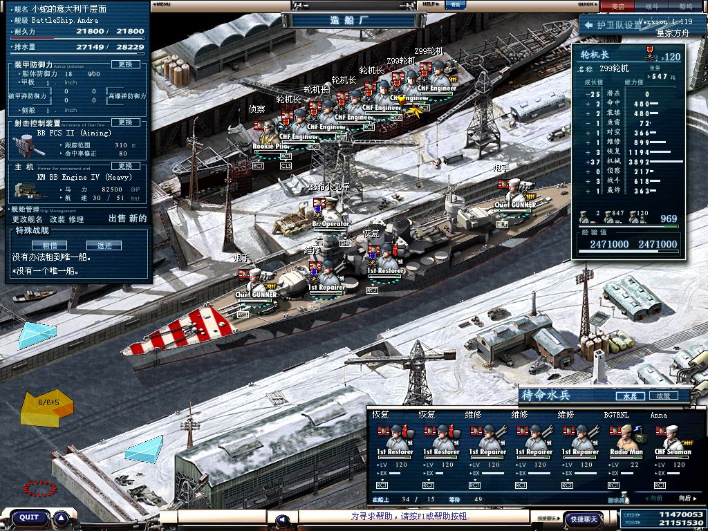 2炮手2防空炮手 4修4补 1甲板 全120级 满熟练 技术110+ 可以满足开BB6的需要