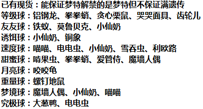 提供双版本共20个球,换9球小鲜奶,7柑果投摔鬼,打击鬼,街头沙铃,除月亮梦球究极的6球瓦斯弹,除月亮6柑果的扒手猫,除月亮的六柑果不良蛙,除月亮的六柑果食梦梦,除爱心月亮的五柑果滚滚蝙蝠,和速度妙喵