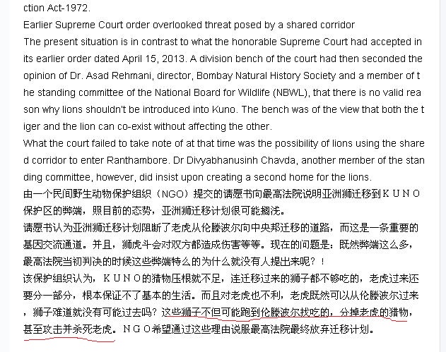 印度官方文件,动物学家认为亚洲狮可以分掉老虎食物,杀掉老虎