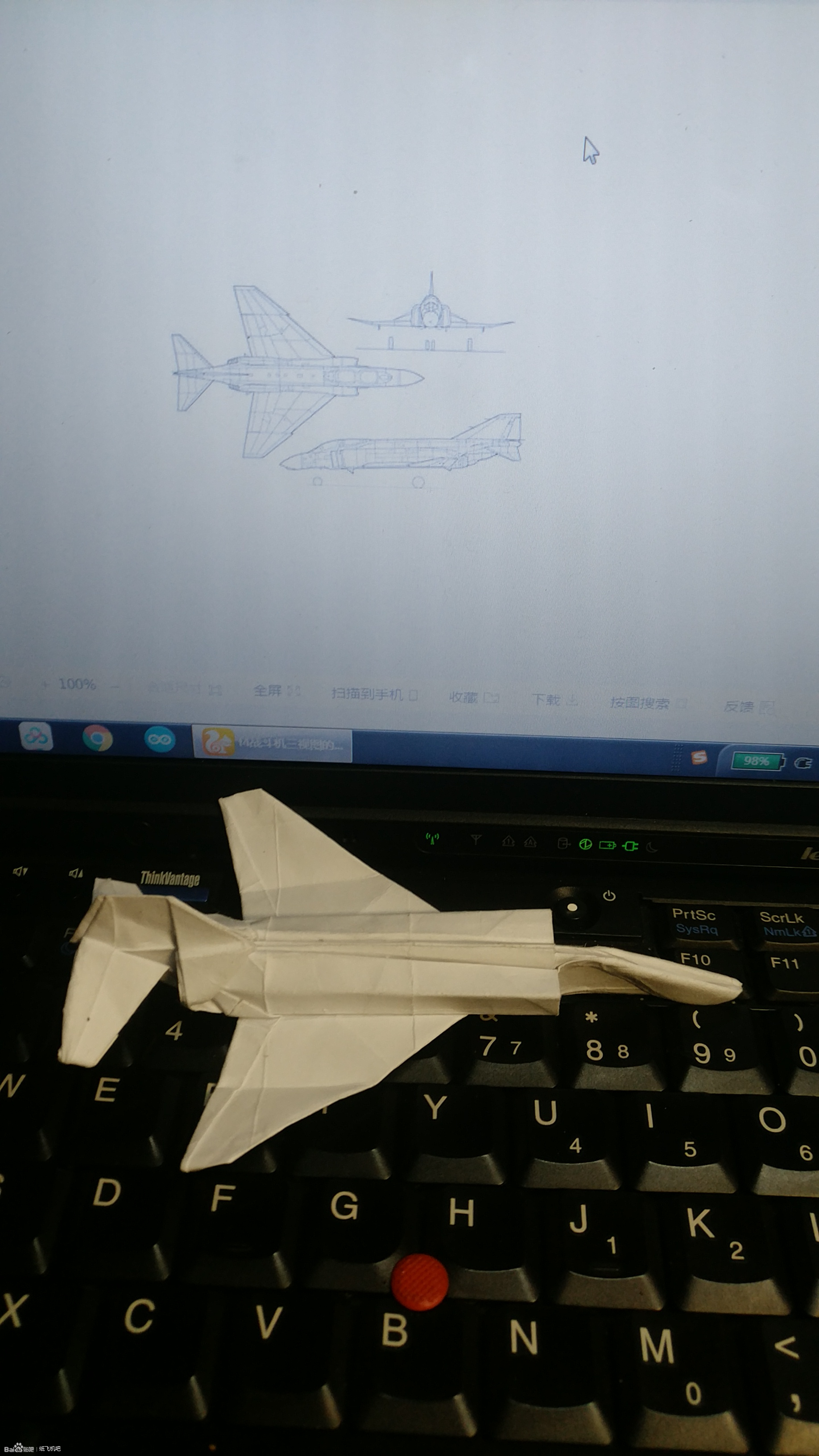 机翼折法正常折出,进气道利用机背多余纸折出