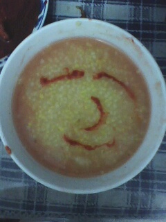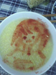 这就是在晚饭的时候我用酱豆腐汤在粥上的涂鸦= -