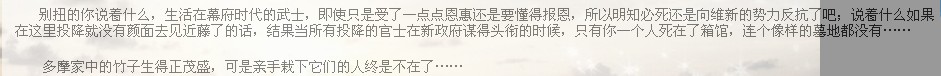很小的时候就以身为武士为骄傲了吧,所以即使卸下了武士的行头端起了长枪火炮,你还是端着武士的骄傲。