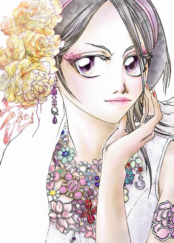 项链是Chanel的09春夏新款,参照《瑞丽服饰美容》2009年3月号总第314期的48页。因为手绘误差以及创作需要,所以没能达到100%相同,请不要见怪;