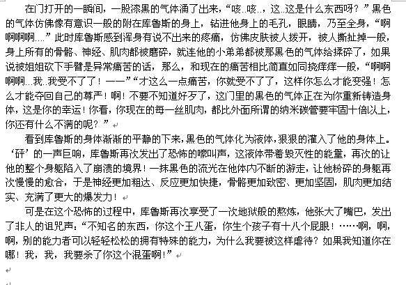 库鲁斯被声音说的毫无还口之力,“那...那我该怎么办!我不是能力者,也没有力量!我能怎么办!!”“那么,你想要力量么?”声音突然说道,“什——”“我说,你想要力量么?强大的力量!足以杀掉所有伤害你的人,所有侮辱过你的人,所有的人都必须跪下舔你的鞋,所有人都必须服从你!你,不想要吗?”“我..我——”“别磨磨蹭蹭的,一句话,要,还是不要!”库鲁斯