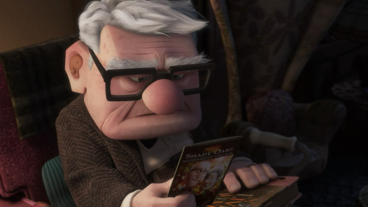 这一幕就已经是卡尔接到福利院的通知 让他去养老了