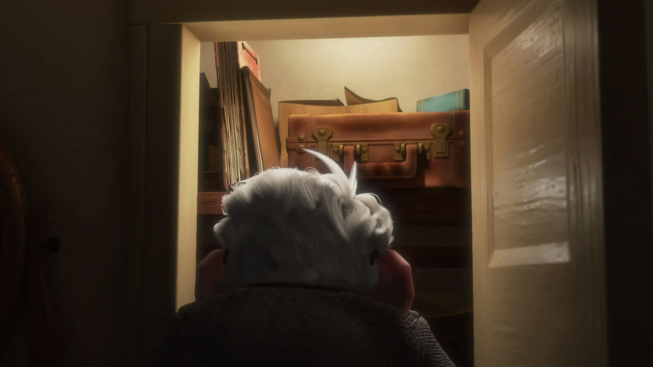 能够解释为什么老爷爷直到影片快结束时才看到画册后几页的细节截图