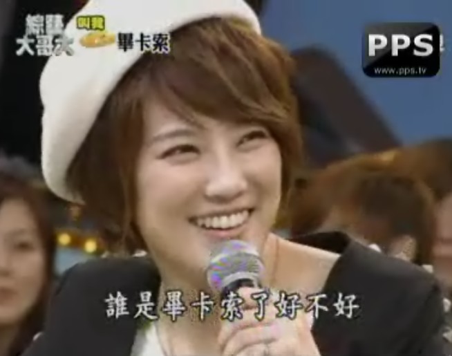 【转寄礼物】<综艺大哥大>截图,戴小白帽的咩咩美死了.