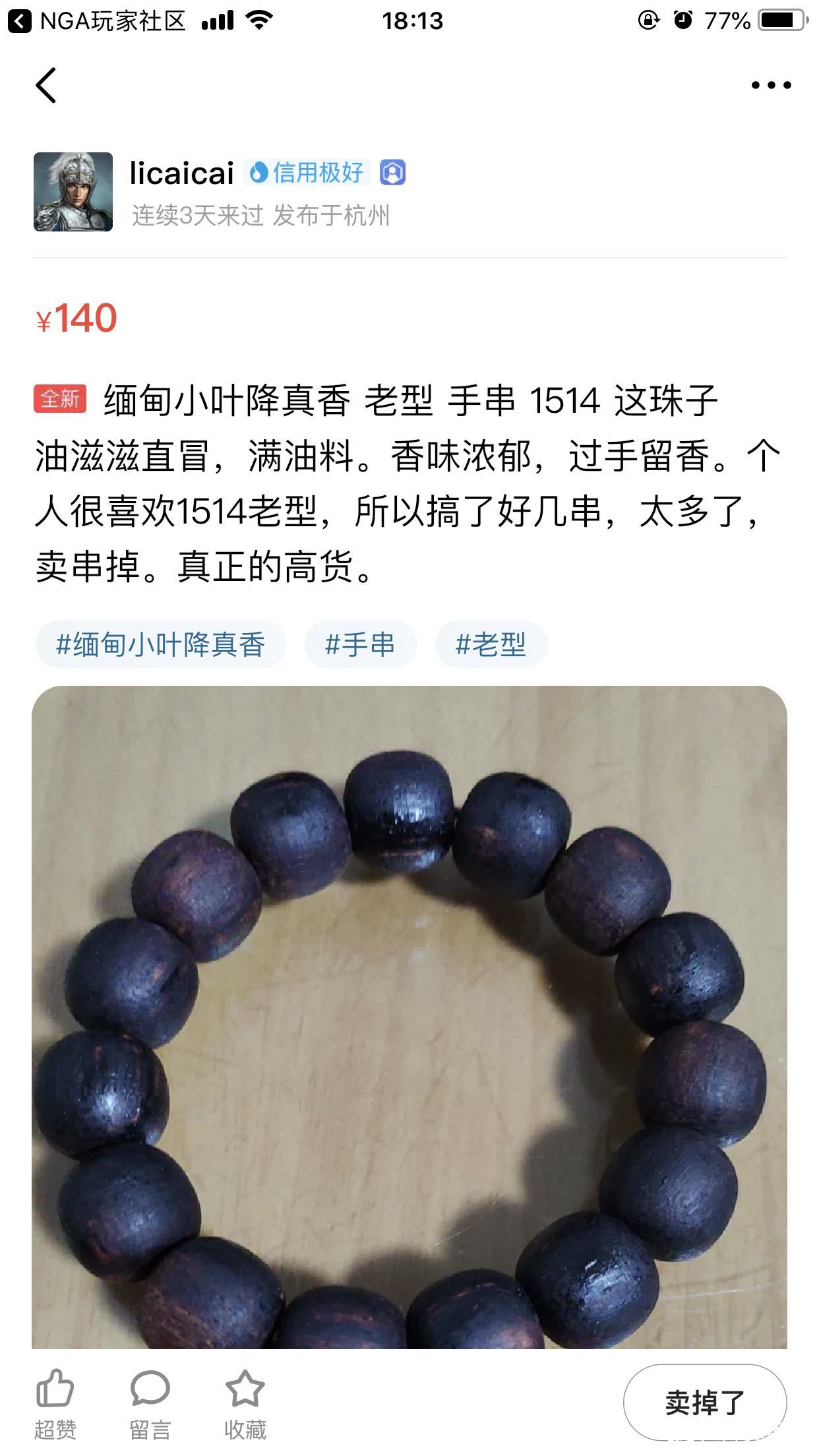 各位大佬,买的手串几乎没味道,卖家说“时间放长了,表面油脂有