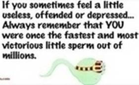 文意:如果有时候,你觉得自己有点无用,被冒犯了,或者很压抑...记住!你曾经是一个游得最快最出色的那个一个精子,赢了其他几百万个!