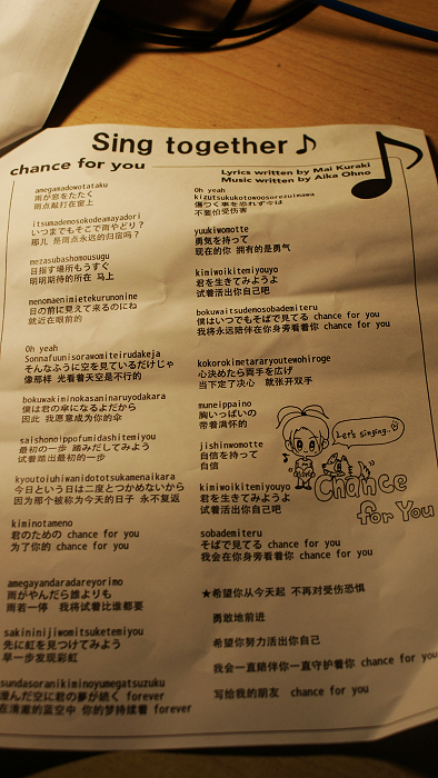最后是发的歌词,纸质很好,得收藏,郁闷没有场刊。。。。