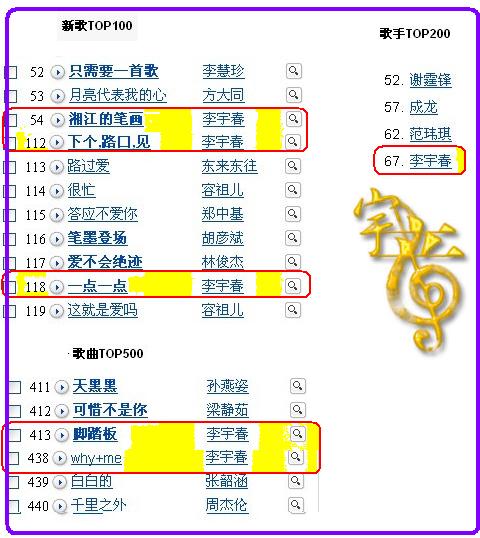 歌手:李宇春 第30名