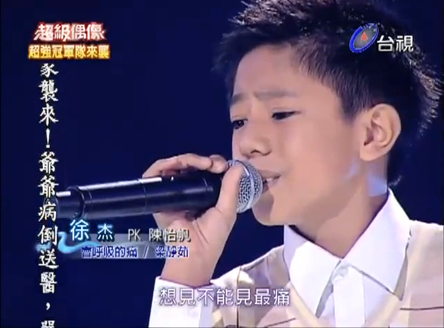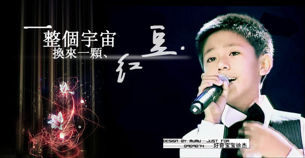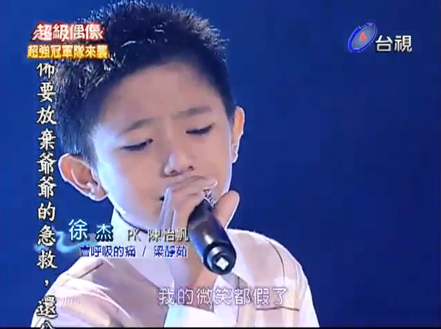 徐杰,一个11岁的台湾小男生,擅长唱女生歌曲,有着天籁般的嗓音.每首歌曲在他的演绎下仿佛都赋予了鲜活的生命,直接穿透人的心灵,震撼着每一位聆听者!