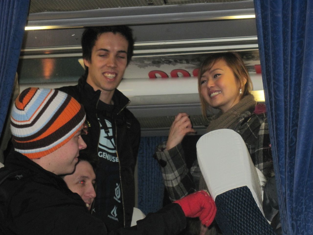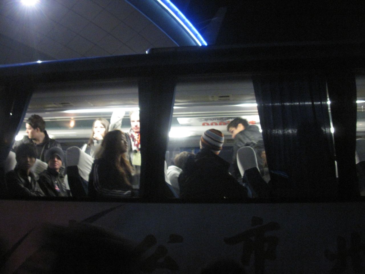 所有选手一辆车。gb因为被人围着出不来。所以最后一个才挤上车,相当可怜。最后都没有坐位坐,只能站在车上。。。。。