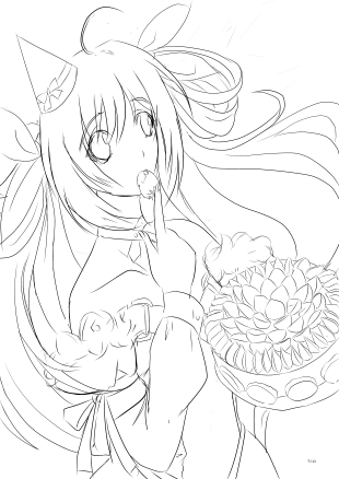 然后呢画了个庆生图...然后还没上色没画完T T先放个线稿吧...哎 我很担心painter娘继续抽...颜色涂完再发完整版的~~
