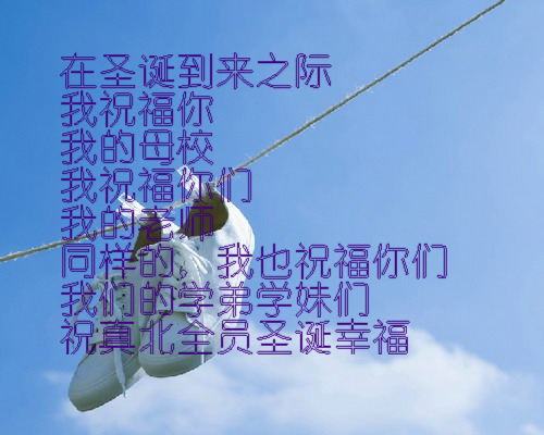 圣诞到了,我来学校的贴吧发个帖子,祝福一下真北中学。同时祝教过我们的老师们节日快了。我希望如过有09三三班的同学回来的话,请留下对老师的祝福,无论是隔多少天看到的,请都要留下祝福,不要留名字最好。