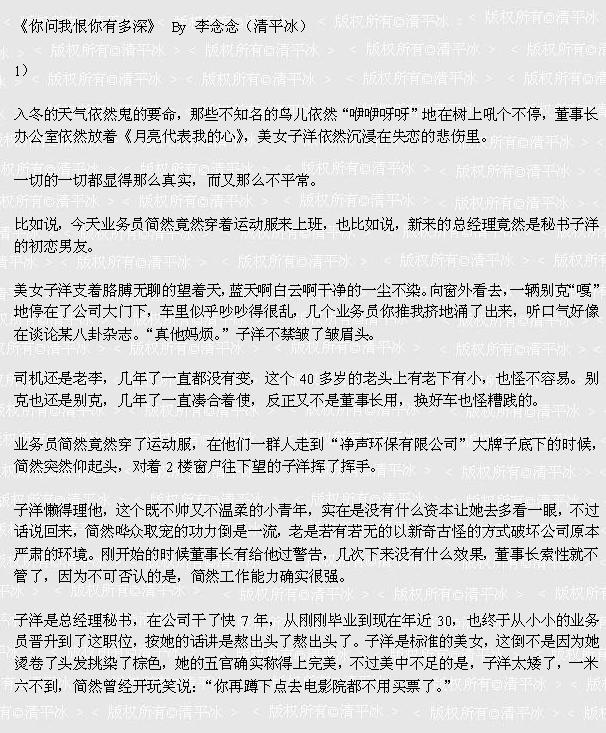 《你问我恨你有多深》初稿完结。呼我的老天爷啊,两万多字拖了将近一年我真够牛比的。(其实是因为今年感情纠纠结结啦- -,在年底把这篇结了但愿明年的男朋友换的不要太勤。)