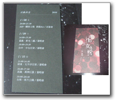 好久不见。这几年大夥儿都还好吧!至於我呢?完成了一个女人最幸福的事,而现在的我身边多了两位男士在保护我,感觉~ ~还不错~ ~ 但始终没有间断的事,就是“唱歌”,在EZ5唱,在世界各地唱,一晃眼就是七年。七年的时间裏,曾经怀抱著再发片的想法,但没来由的一次一次落空,哈哈~ ~ 还好算命的说我命中注定唱到老,唱到死~ ~嘻嘻~ ~ 所以啦,我回来囖,回到唱片的岗位上,谢谢秀男老师一路的支持,谢谢珊妮大公无私的借我昂贵的麦克风录音,谢谢参与整张唱片的工作人员,宏宇哥、培华哥、美杏、John、大维哥、石头、以及北京所有人员,还有威德,小跟班Sandy,我的好友们,曹叔、王大哥、小虎、小芸,天啊!七年中,我有太多该感谢的人,对了,还有我婆婆,佳霓、老王、小王子,当然还有Paul和亲爱的小哥,没有他们,我可能没办法做完整张专辑,最重要的是,等了七年的你们,一直对我不离不弃,一直用念力叫我唱下去的歌迷朋友,真的好爱好爱大家,我会好好唱,努力的唱快乐的唱,are you ready?我~ ~来~ ~囖!!!