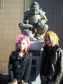 恵比寿駅にてメイクしたので担当の方がくるまでの时にエビス様と写メりました。