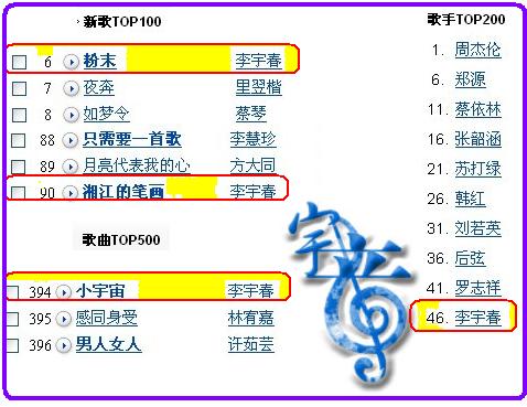 【宇音排行榜】2010.01.09截图请放这
