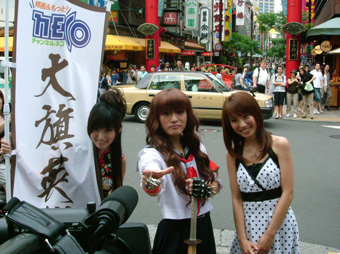 日本NECO派出美女宣传《大旗英雄传》!还举了一面大旗,哈哈!