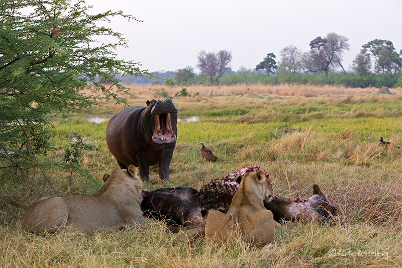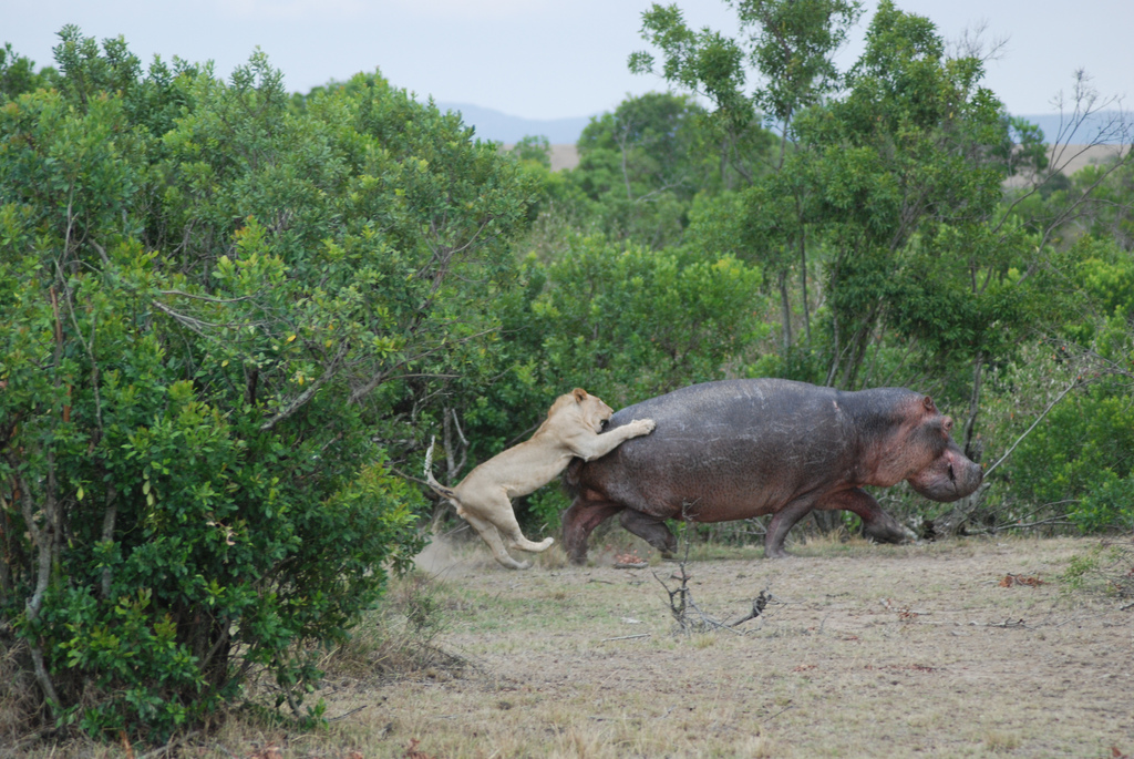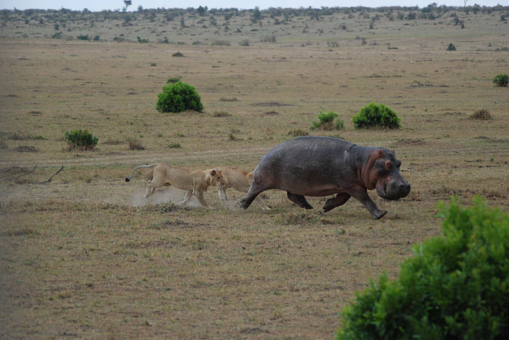 雄狮从河马两侧迂回攻击