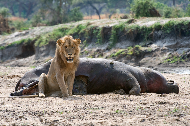 等河马体能下降到冰点时, 雄狮的大口可以咬断