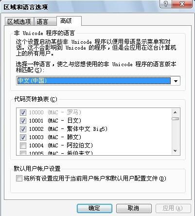 然后把区域选项和高级都改成中国台湾。高级里的MAC-繁体中文选项前打钩。