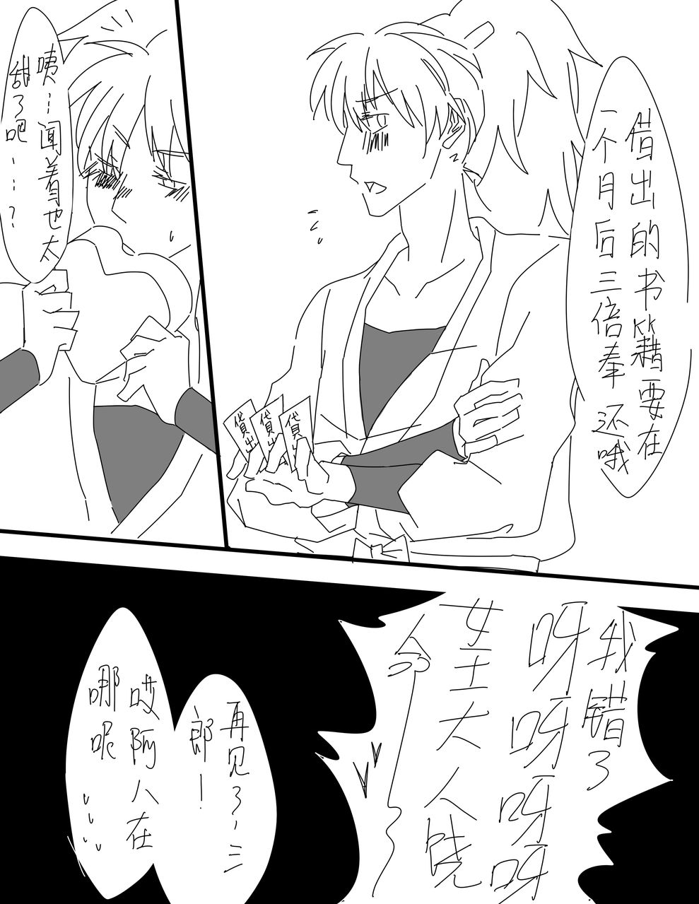 最后一格是因为....绫部出来找他老公找了一晚上.....