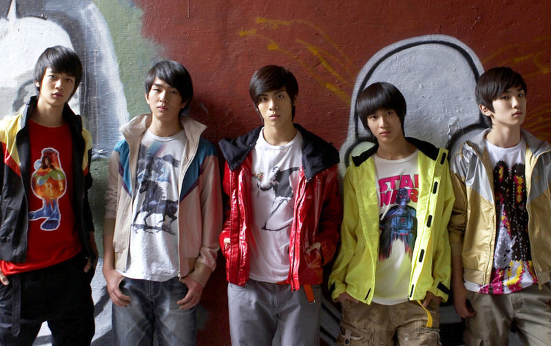 这套衣服其实就可以看出以后小晒们打歌服最大的一个特点——自成一派……换句话说就是五个人的衣服它就不是一个系列滴(虽然cody努力想统一颜色,但很明显是欲盖弥彰……我们又不是瞎子)这点其实从开始认识小晒后才注意到,因为东团的大部分打歌服都是很统一的,不管是样式还是颜色,比如the way you are时期都是破破烂的布加上破破烂的渔网(习惯性东团并发症,见谅)