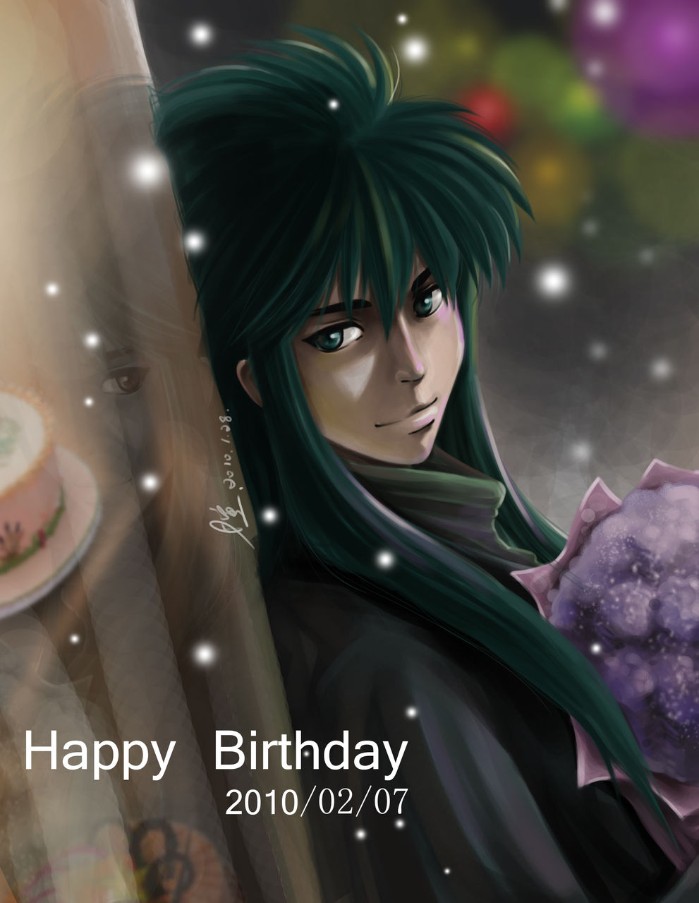 杯具啊……那么漂亮的图那么美妙的文就被那苍白无力毫无特色的“Happybirthday”给破坏了……………………ORZ。。内就不能把字做漂亮点吗…………T T