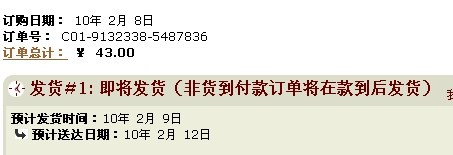 预计发货日期 : 2010年02月17日