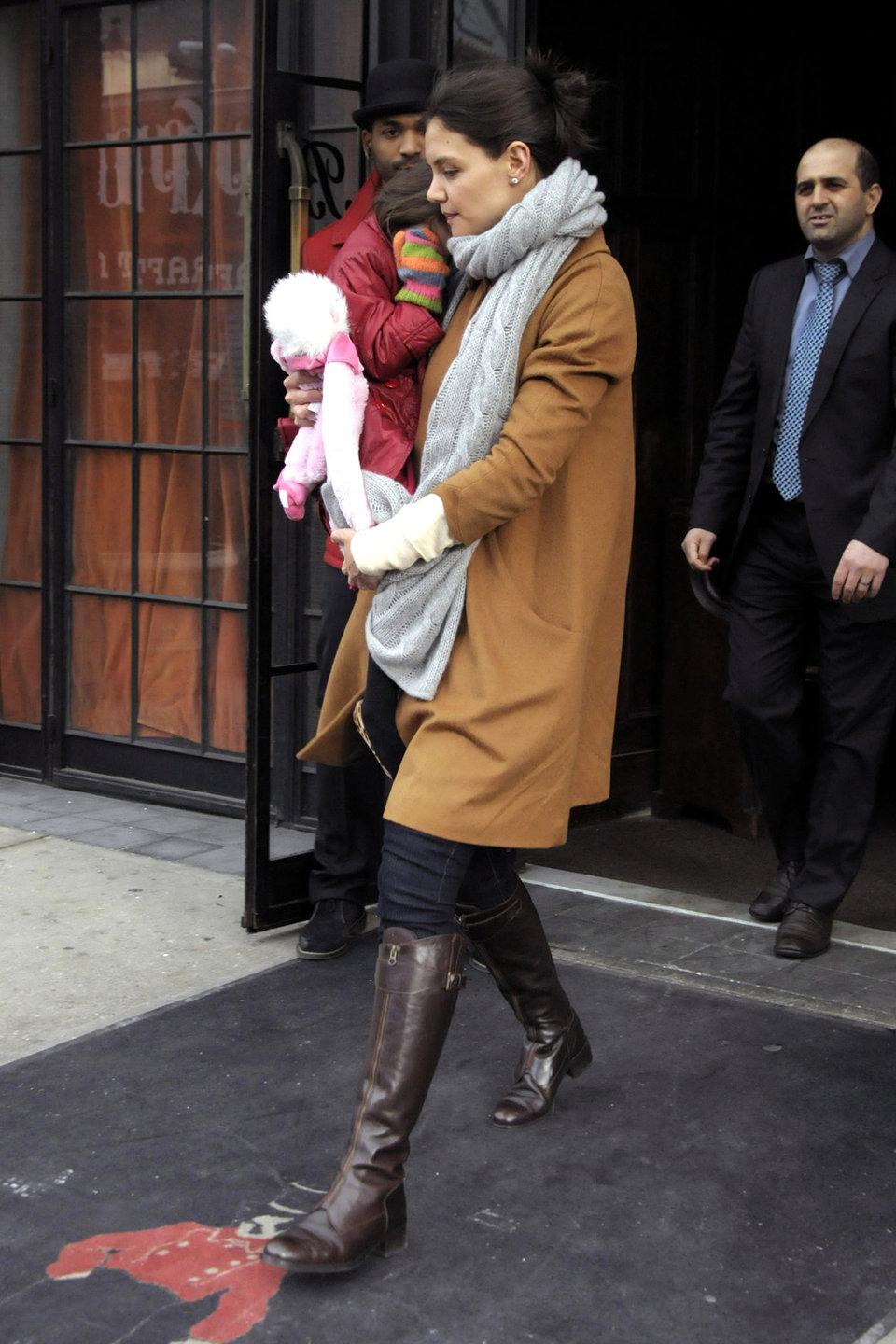 With the little tyke and a pink stuffed toy in hand, Katie then made her way to the Bowery Hotel for a low-key mother-daughter lunch date.