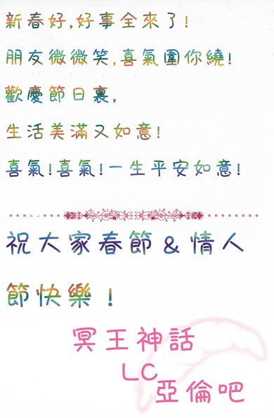 【祝福】LC亚伦吧向贵吧及亲们献上春节&情人节祝福!