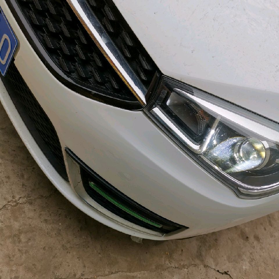 看了一下,前杠是塑料的,叶子板是金属的,主要是看着难看,想自己买瓶东西喷喷得了