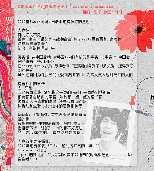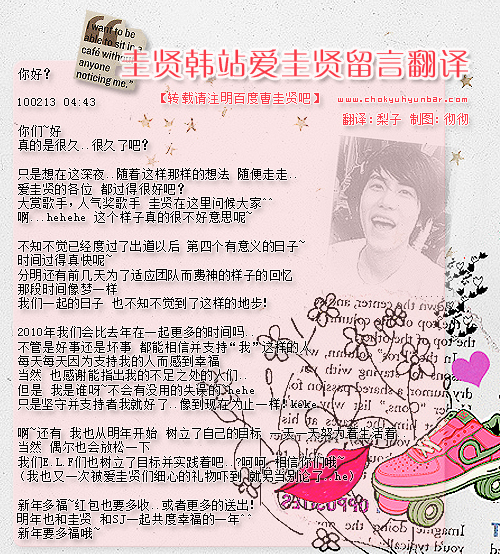【100214留言】圭贤在韩站爱圭贤和K-afeteria新年留言[翻译]