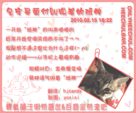 【100217西歪】0215希澈视频&文字更新“名字是面对叫唤着的班神”