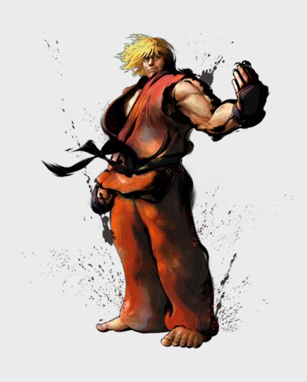 和隆非常相似的角色,但其实差别也非常明显。基本上,隆属于“出招速度发生快,拳系招式优秀”,而肯则属于“出招后硬直很短,腿系招式优秀”。