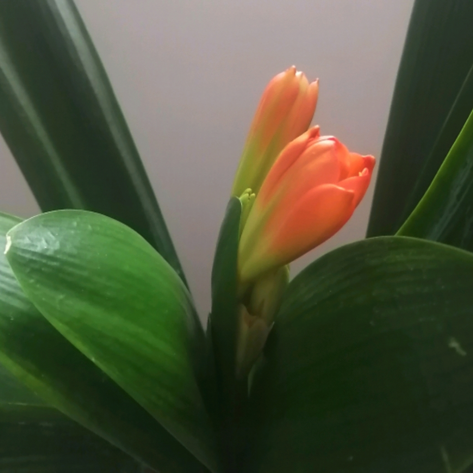 君子兰苗期过后,叶片一组一组的长出来。